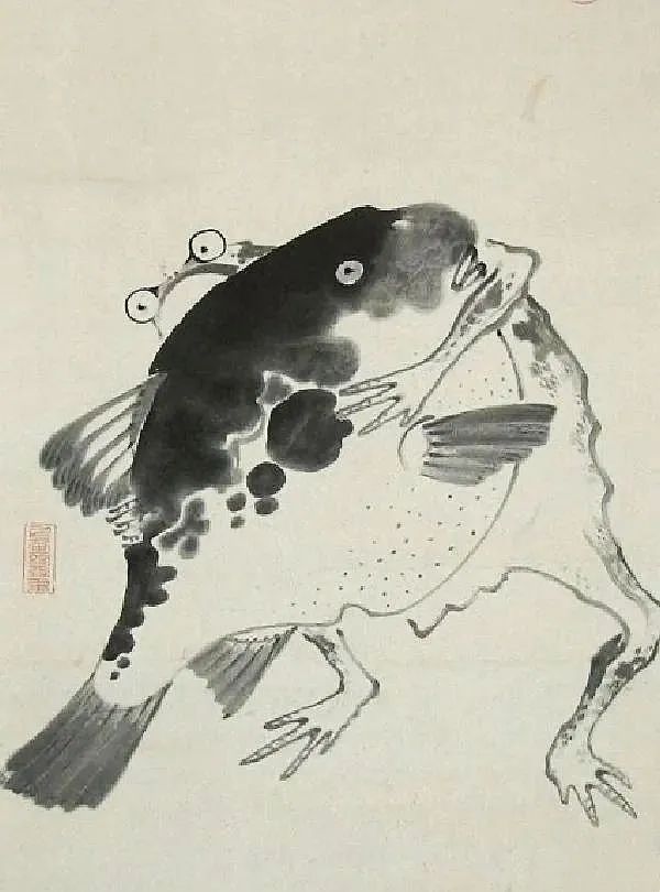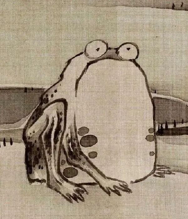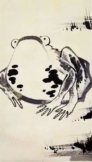 若冲的色彩,是江户时代的“赛博朋克”。他临摹宋元水墨,却嫌不够刺激,于是疯狂“加料”——在《雪中锦鸡图》里,他用“里色彩”技法在绢本背面施彩,让锦鸡的羽毛艳丽得像霓虹灯;在《菊花流水图》中,他把光琳派的波浪纹与宋人笔法结合,金箔与水墨在矛盾中达成和谐,仿佛一场色彩的“化学爆炸”。更绝的是《贝甲图》,他把贝壳画成妖怪面孔,波浪线条如心电图般起伏,让人分不清这是海洋生物图鉴,还是外星生物的狂欢派对。