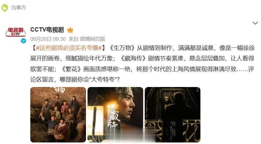 该剧自8月13日开播以来迅速掀起追剧热潮。爱奇艺站内热度破万、电视台收视率突破4%、社交平台热搜话题不断……在竞争激烈的长剧市场,《生万物》的亮眼数据足以称得上“爆款”。“俺知不道”“拉呱”“俺爹俺娘”等剧中方言台词成为流行热梗。