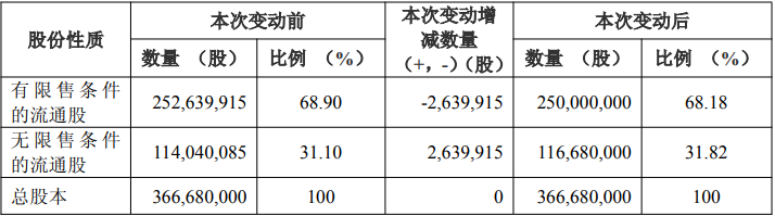 在本次限售股上市流通前后,公司股本变动结构如下: